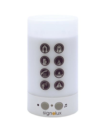 Signolux fyrtårnet fungerer ved trådløst at modtage alarmsignaler fra Signolux dørtryk.